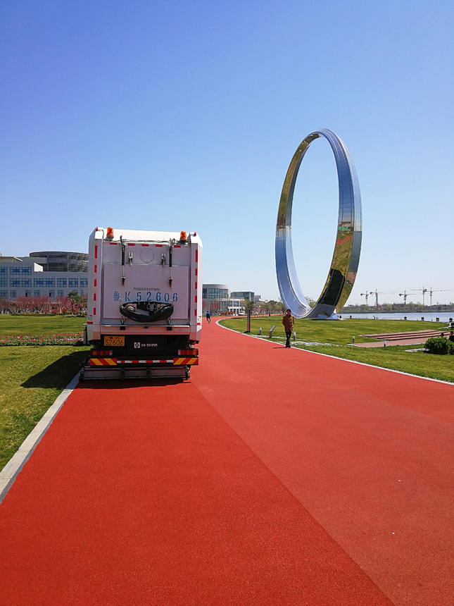 2018年4,山東省榮成市,“海山颶風(fēng)牌”重型道路污染清除車(chē)等大型高壓清洗車(chē)、清掃車(chē)對(duì)賽道進(jìn)行深度洗掃,大幅度提高“榮馬”賽道的潔凈度,向全世界跑友展示了中國(guó)最高顏值馬拉松賽道。