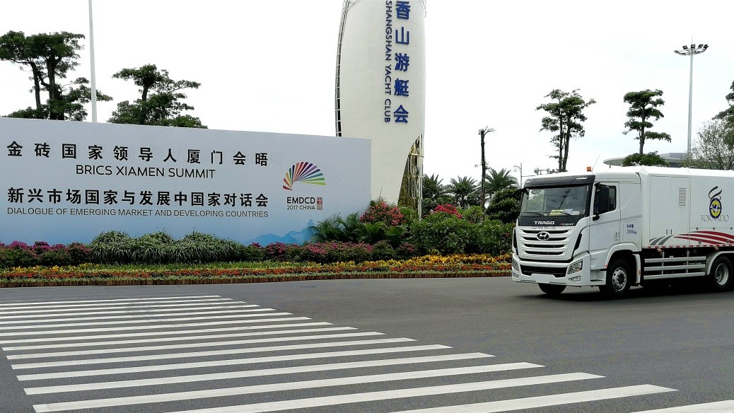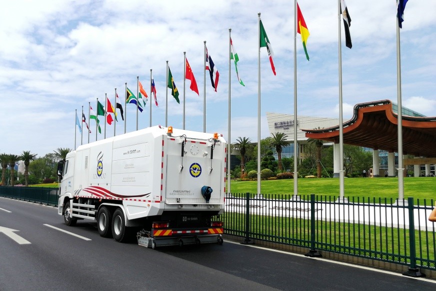 廈門市環(huán)衛(wèi)為了以最好的城市面貌迎接金磚峰會(huì),從福建海山機(jī)械股份有限公司采購(gòu)了代表當(dāng)今道路深度清潔世界先進(jìn)水平的重器–重型道路污染清除車,以滿足高標(biāo)準(zhǔn)會(huì)場(chǎng)以及核心區(qū)域的地面環(huán)境要求,使廈門以更加靚麗的姿態(tài)迎接來自世界各地的金磚貴賓。