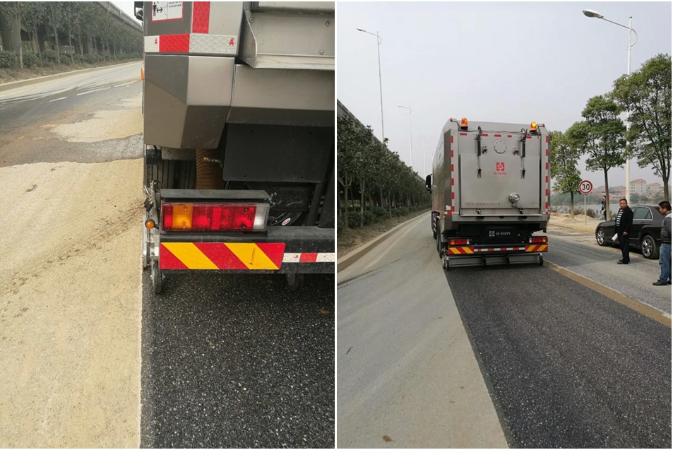 每當(dāng)演示時,強(qiáng)大的“海山颶風(fēng)牌”重型道路污染清除車行駛過的道路煥然一新,猶如新鋪設(shè)一般,石子顆粒清晰可見顯得格外凸顯,更有好奇者嘗試把手指往地上一抹,磨蹭手指竟然一塵不染,真正達(dá)到“席地而坐”的標(biāo)準(zhǔn),很多現(xiàn)場觀看該設(shè)備作業(yè)后的客戶及市民,都驚嘆頭一回看見這么厲害的“神器”。