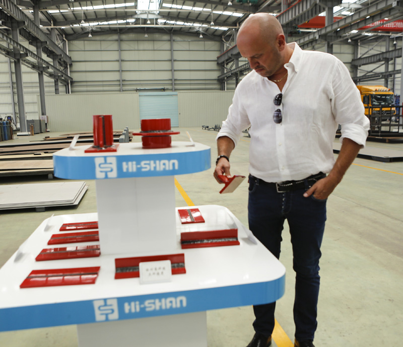 On 26th July, when jeroto, an Italian client, was touring in Hishan’s workshop, he was so amazed and told Mr Huang general manager of Hishan,that Hishan was far beyond his imagination with its capacious workshop and innovative products.