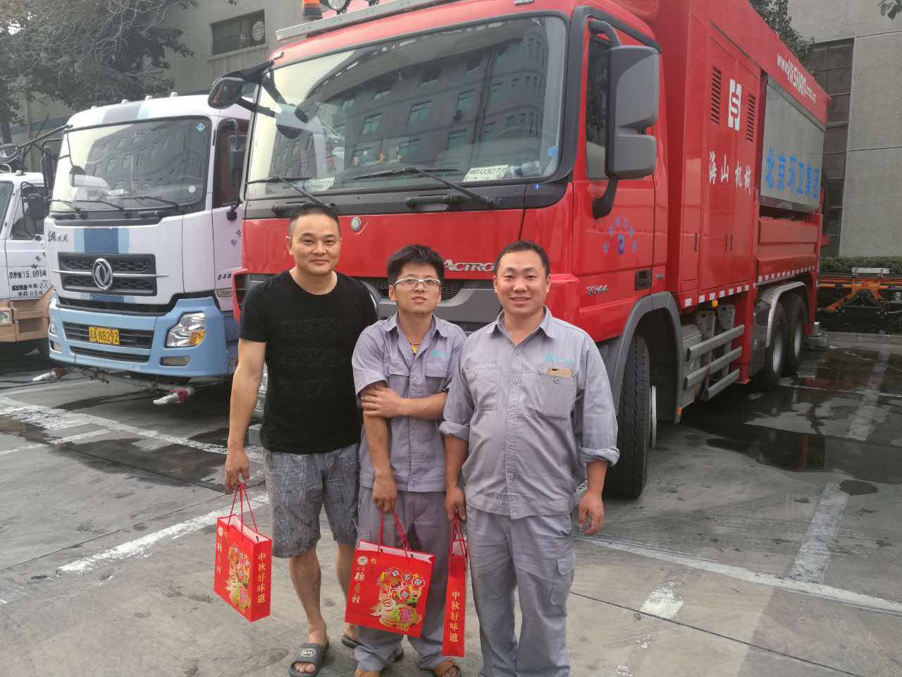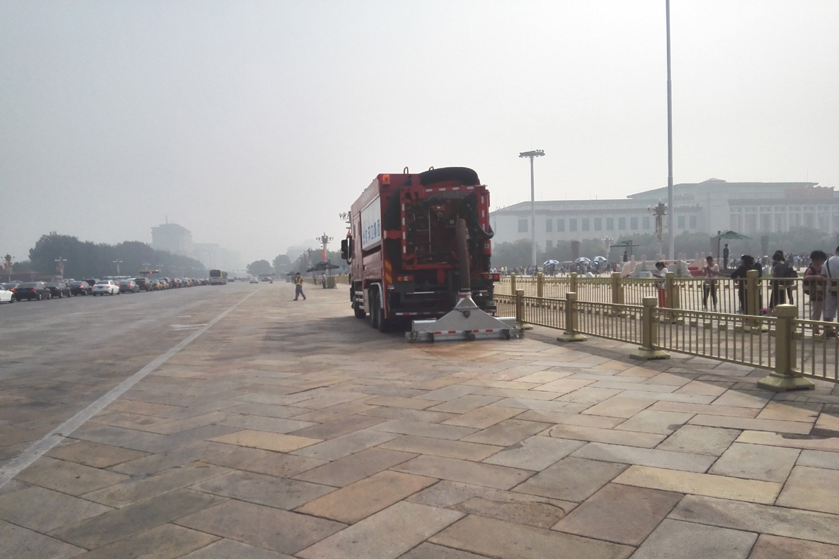 After mid-autumn festival, Hishan squad is back on Changan Avenue to do road sweeping and pollution cleanup for the incoming National Day. Team leader Liuchan said, we have been in Beijing for over one month and we did not take one weekend off ,not even on holidays, as we are doing road sweeping with Hishan Hishan latest high-end anti-pollution vehicle to clean the roads and streets in Beijing, which is a field test as well as a chance to prove to Beijing and Beijinger that Hishan has the capability keep the environment clean and make the “APEC Blue”stay. We would be so proud of Hishan if we can do it.